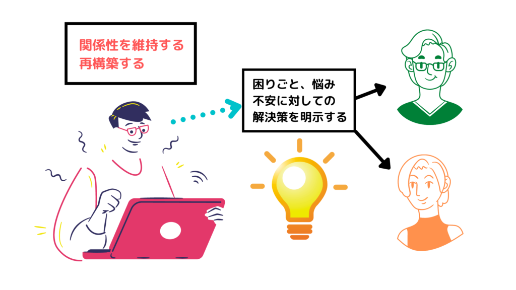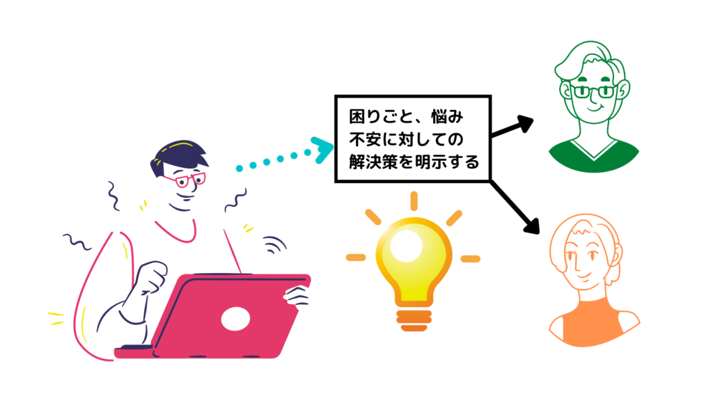 具体的には、困りごと、悩み、不安なものに対しての解決策を明示してあげることが必要です。